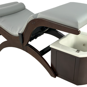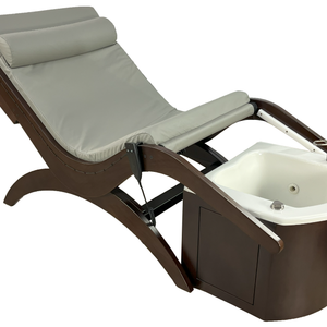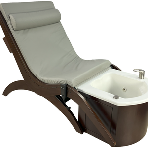 This innovative approach to pedicures was developed in collaboration with a reflexology spa. The ergonomics of the lounger provide a comfortable platform for both the client and therapist. A removable foot section easily pulls away to allow for a foot soak in sublime comfort. Once the foot section is removed and the client has had time to soak both feet, a footrest clips on to address one foot at a time while the other is soaking. The electric tilting function is operated by hand control, foot control, or an optional recessed switch. The cushion is replaceable should it get damaged over years of productivity. The solid wood frame and innovative features of the S Pedi-Lounge make it an original piece of equipment that will set you apart from the competition.